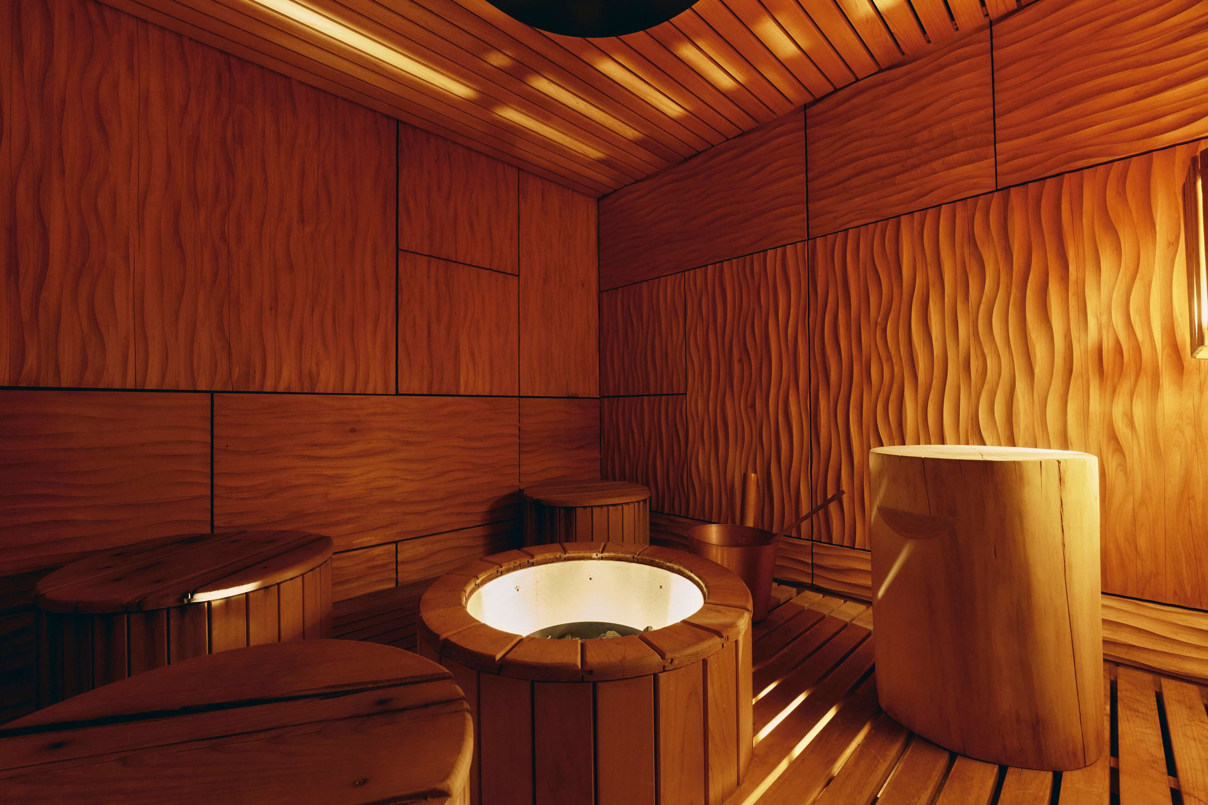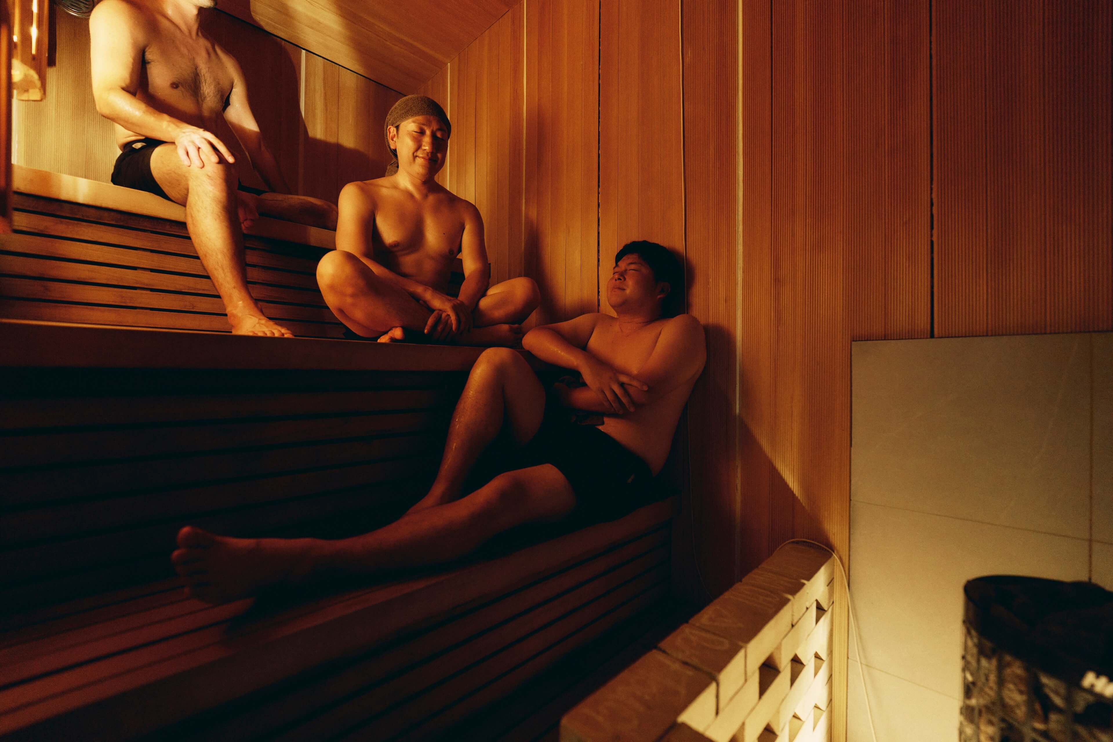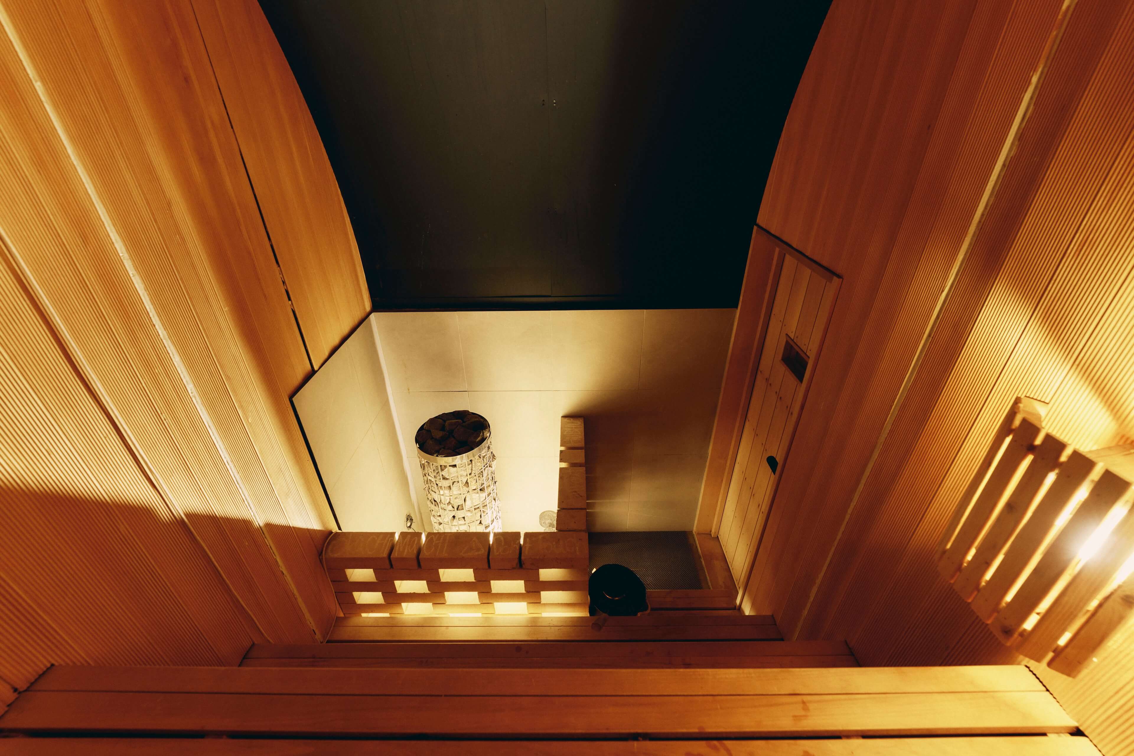 ベンチの高さでお好みの温度を楽しめます。 静かに自分と向き合うサウナらしい没入感をお楽しみいただけます。